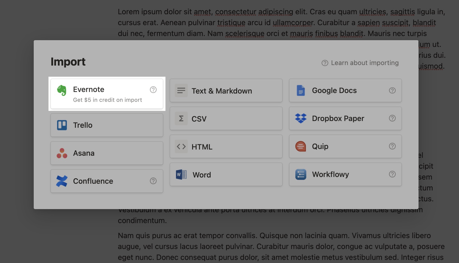 💡 Por venir de Evernote, Notion te premia con $5 en crédito para planes Pro.